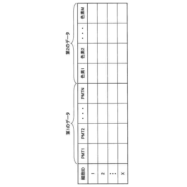細胞からの光をセンシングした結果である第1のデータと、前記第1のデータを複数の蛍光に分離した結果である第2のデータとを対応付けて保持する情報保持部と、
