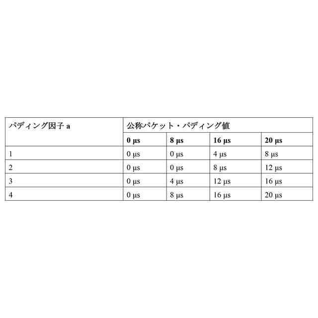 [0009] 第1の態様の第3の実装において、第3のパケット拡張期間と第1のプレ・フォワード誤り訂正パディング因子は、以下のケース:第3のパケット拡張期間は16μsであり、第1のプレ・フォワード誤り訂正パディング因子の値は1,2,及び3のうちの1つであること;第3のパケット拡張期間は12μsであり、第1のプレ・フォワード誤り訂正パディング因子の値は1及び2のうちの1つであること;又は第3のパケット拡張期間が8μsであり、第1のプレ・フォワード誤り訂正パディング因子の値は1であること;のうちの1つとして構成されていてもよい。