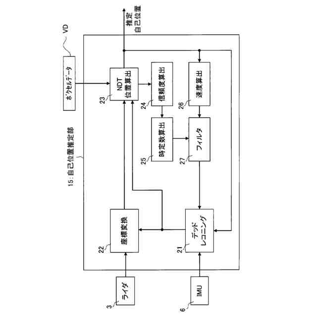 レーザスキャナなどの計測装置を用いて計測した周辺物体の形状データを、予め周辺物体の形状が記憶された地図情報と照合(マッチング)することで、移動体の自己位置を推定する技術が従来知られている。例えば、特許文献1には、空間を所定の規則で分割したボクセル中における検出物が静止物か移動物かを判定し、静止物が存在するボクセルを対象として地図情報と計測データとのマッチングを行う自律移動システムが開示されている。また、特許文献2には、ボクセル毎の静止物体の平均ベクトルと共分散行列とを含むボクセルデータとライダが出力する点群データとの照合により自己位置推定を行うスキャンマッチング手法が開示されている。