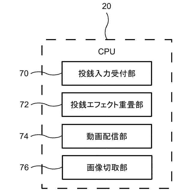 【解決手段】サーバは、視聴ユーザの携帯端末から歌唱動画を装飾する投銭エフェクト画像60の表示指示である投銭入力を受け付け、投銭入力を受け付けた後の重畳タイミングTで投銭エフェクト画像60を歌唱動画に重畳し、投銭エフェクト画像60が重畳された歌唱動画を携帯端末へ配信する。