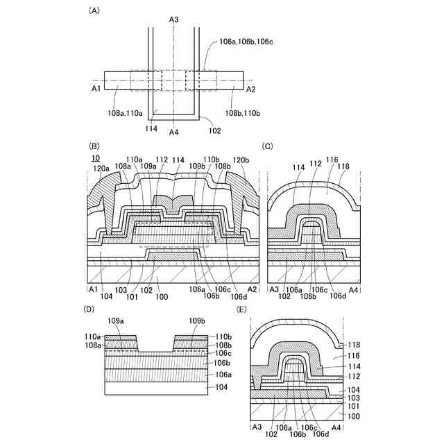 【解決手段】トランジスタ10は、基板100上に形成された第1の絶縁体104、その上に形成された第1~第3の酸化物絶縁体106a、106c、106d、第3の酸化物絶縁体の上に形成された第2の絶縁体112と、その上に形成された第1の導電体114と、その上に形成された第3の絶縁体116と、を有し、第1、第2の酸化物絶縁体の伝導帯下端のエネルギー準位は、酸化物半導体106bの伝導帯下端のエネルギー準位より真空準位に近く、第3の酸化物絶縁体の伝導帯下端のエネルギー準位は、第2の酸化物絶縁体の伝導帯下端のエネルギー準位より真空準位に近く、第1の絶縁体は酸素を含み、第1の絶縁体は、昇温脱離ガス分析において、酸素分子の脱離量が1.0×10
