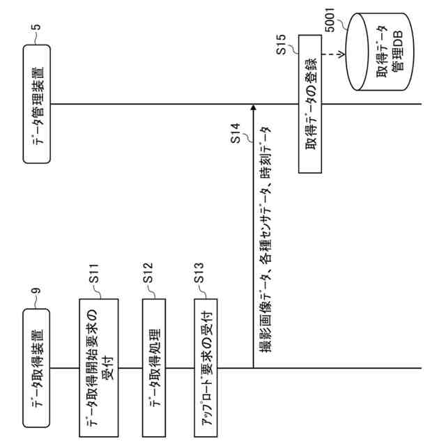 移動体システムを用いたデータ取得処理の一例を示すシーケンス図である。