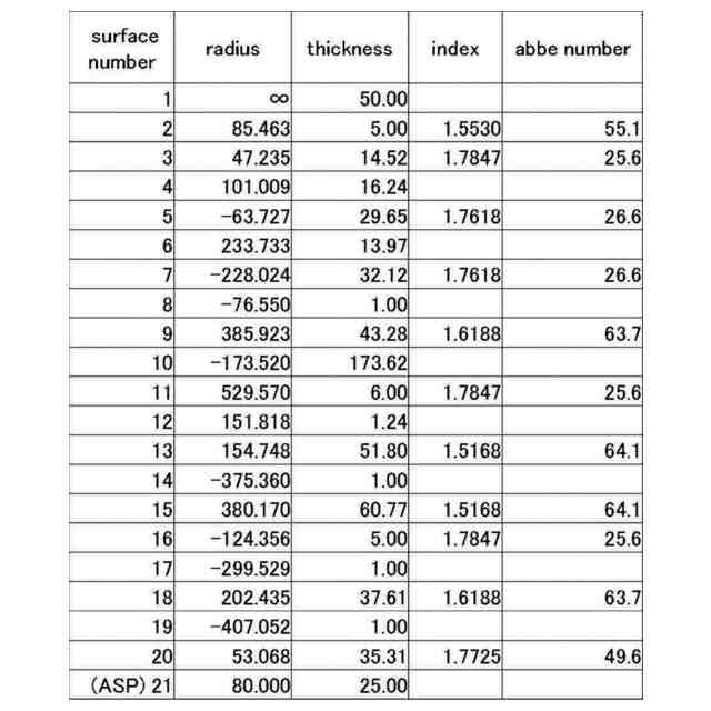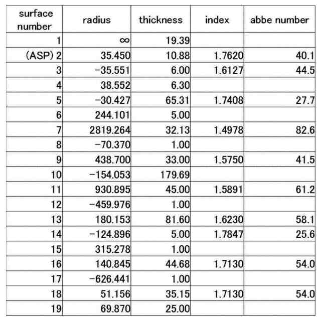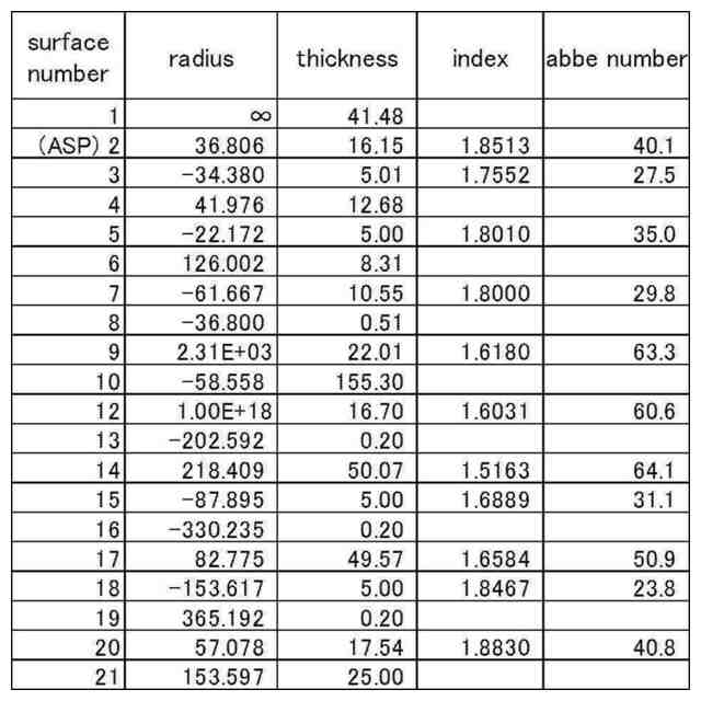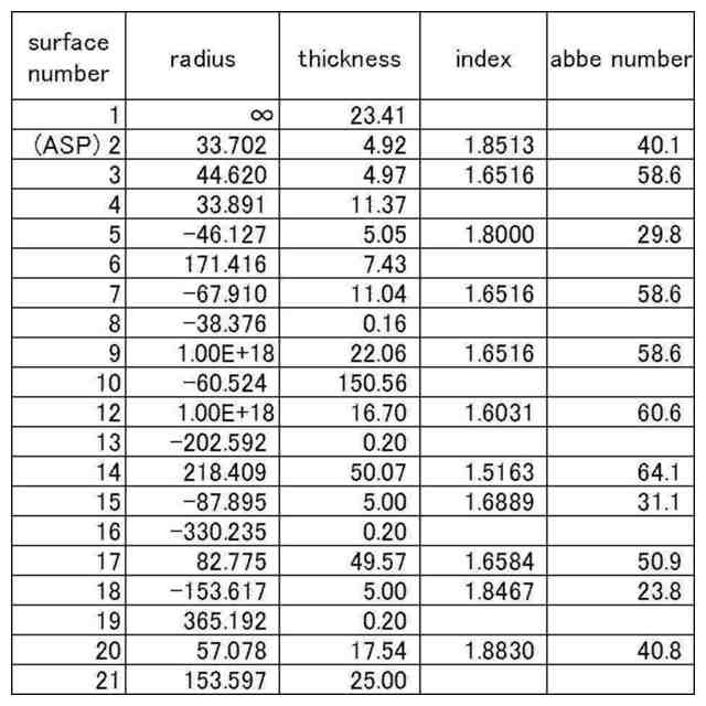 実施例2-1の対物レンズ系の構成を示す図。