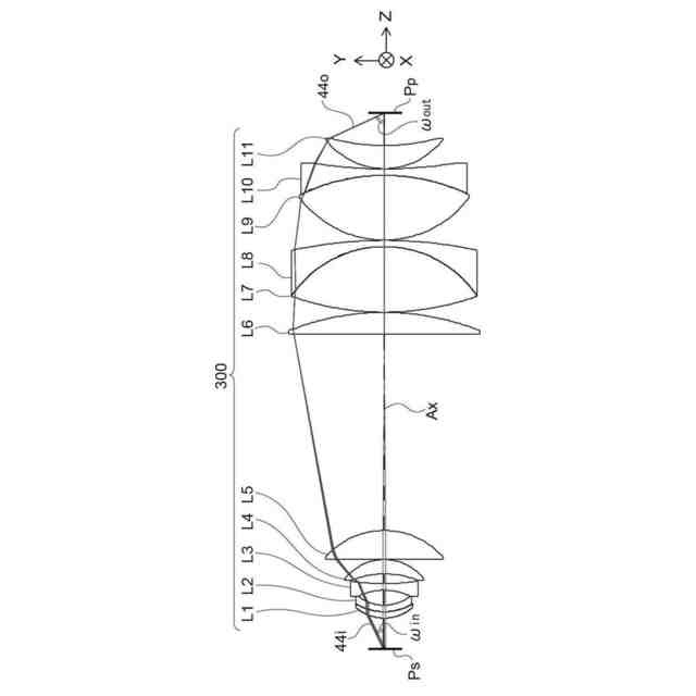 対物レンズ系のωinとωoutの関係の例を示す図。