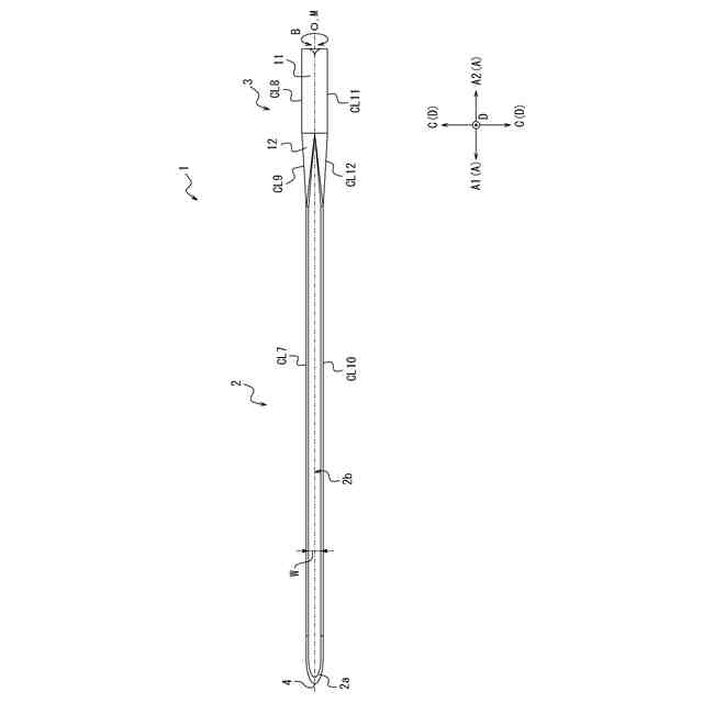 本開示の1つの実施形態として、前記スリットは、前記穿刺部の前記先端面から、前記被保持部の前記テーパー部まで延在している。