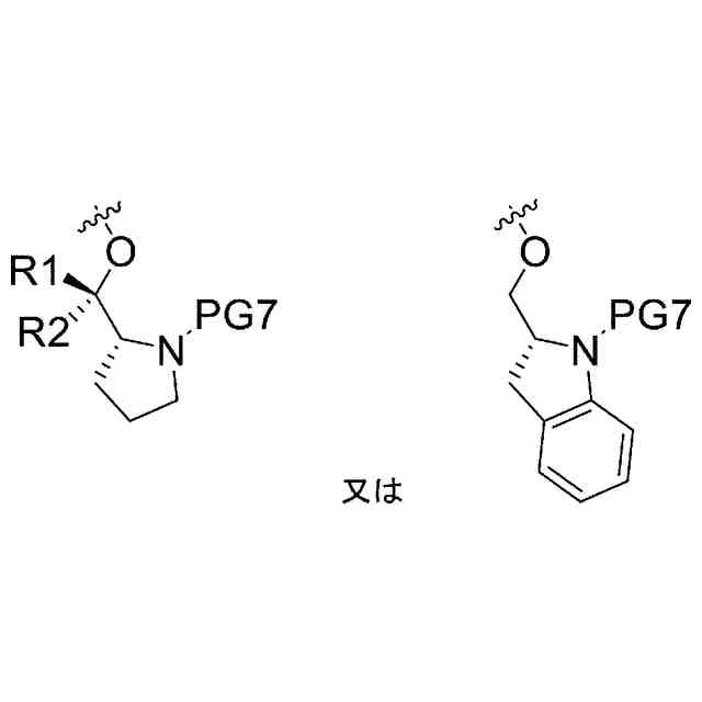 であり、R1及びR2は、上で定義したとおりであり、PG7はアミノ基の保護基である。]