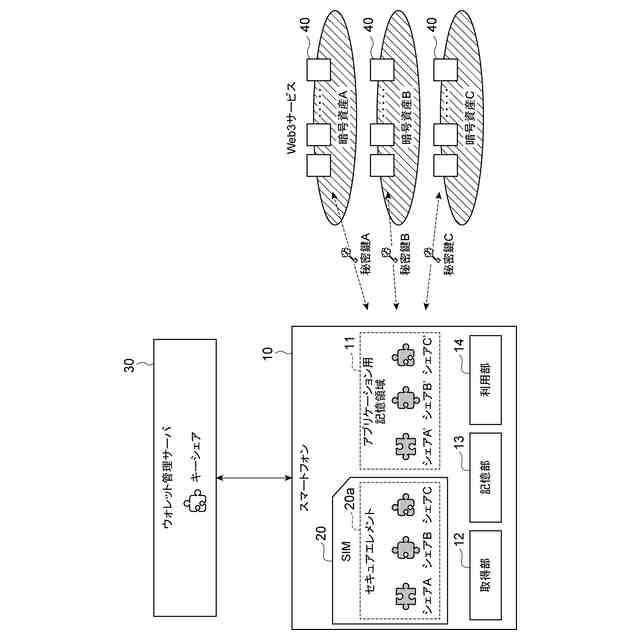 秘密鍵が漏洩すると暗号資産が他者に不正に引き出されてしまうおそれがある。上記のように秘密鍵を単に移動通信端末に記憶させておくだけでは、必ずしも秘密鍵を安全に保持しているとは言えない。