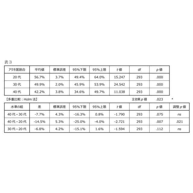 ここで、アクネ菌は、遺伝学的に、タイプIA1、1A2、1B、II及びIIIの5つのサブクラスに分類される。本発明者の検討によれば、ニキビの症状を訴える被験者は、症状を訴えない被験者と比較して、被験者から採取されたサンプルに含まれる全細菌に占める全アクネ菌の割合が多く、且つ全アクネ菌に占めるタイプIIIのアクネ菌の割合が少ない傾向にあることが判明した。