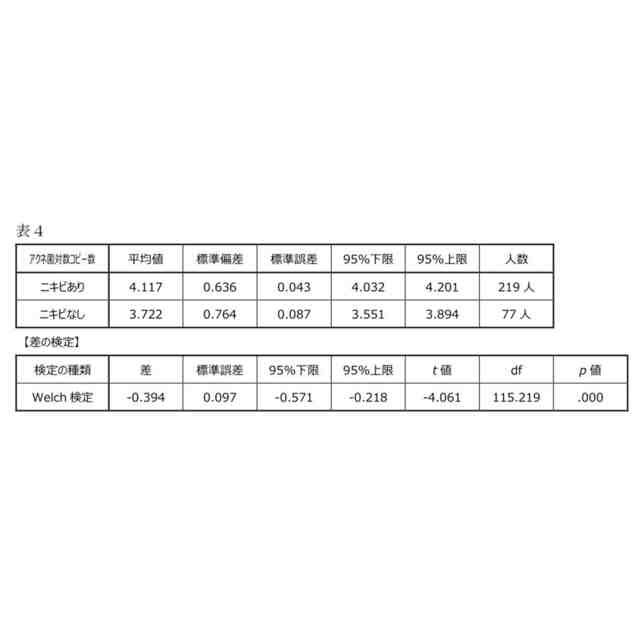 「ニキビあり」及び「ニキビなし」における6.4mm