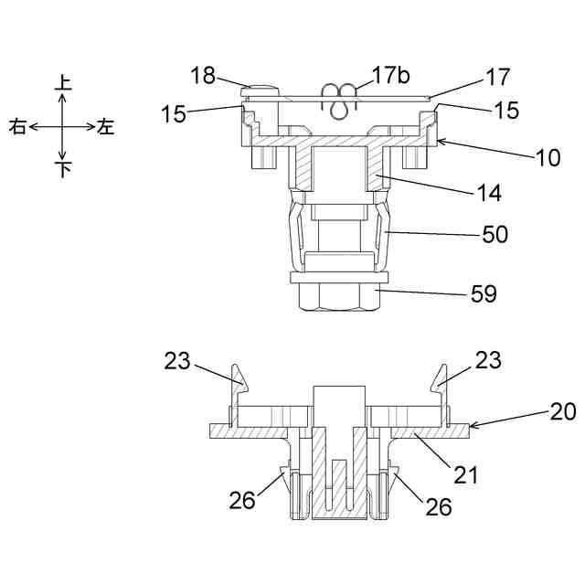 図12の状態においてボルト59を締め付けた状態の断面図である。