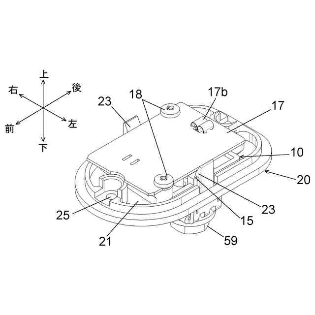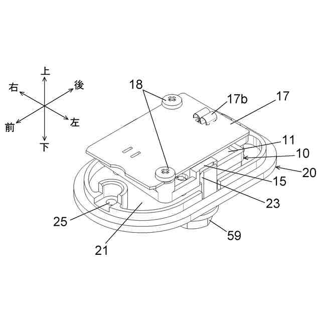 車載装置の軽量化やコスト低減などの観点から、金属製のベースを、金属製のベースと樹脂製のベースとで構成するアンテナ装置がある。また、部品保持構造に関し、スナップフィット等の係止構造での保持は、ねじの削減に有効である。一方、製品落下の衝撃や、車両走行時の振動・衝撃等で係止構造が開き、部品が脱落する可能性がある。