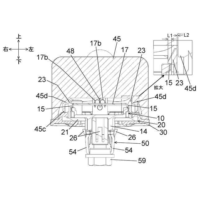 図11の状態においてケース45を組み付けた状態の断面図である。
