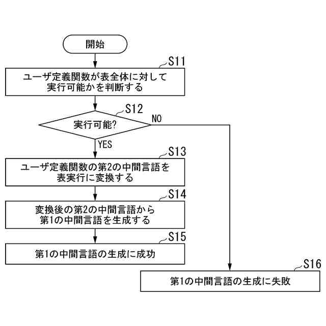 get_row(%tbl, 0)は、指定したテーブルの0行目を読み出す命令、get_scalar(%1, “a”)は、%1列からa列を読み出す命令、add_scalar(%2, %3)は%2と%3を加算する命令、set_row(%result, 0, %4)は、0行目の%result(c列)に%4をセットする命令である。表形式のデータや行列データの各行又は各列に対する処理のように、繰り返し処理が含まれるユーザプログラムの中間言語を生成すると、繰り返しの数だけ命令を生成しなければならない。このことは処理コストの増大の要因となる。具体的には、中間言語の命令生成のオーバヘッドや、生成した命令の実行オーバヘッドによる速度低下、大量の命令によるメモリ利用量の増大などが発生する可能性がある。