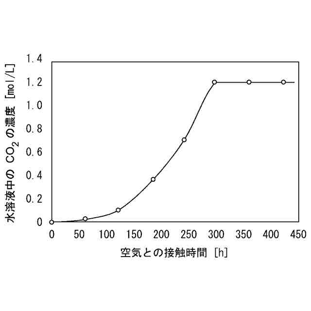 水溶液中の二酸化炭素濃度の時間変化を表すグラフである。