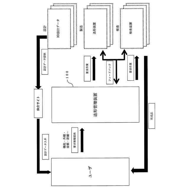三次元造形物の造形に関する一連の工程には、設計や製造の他に検査の工程がある。これらの工程は異なる業者等によって実施される可能性がある。よって、三次元造形物の造形に際しては、造形に関する一連の工程を管理することが求められる。特許文献1に記載されたシステムは、造形業者を選定することを支援するものである。そのため、特許文献1に記載されたシステムは、三次元造形物の造形に関する一連の工程を管理する用途には適用することができない。