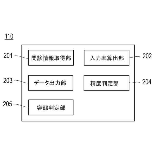 前記被験者の問診情報の入力率に基づき、前記問診情報の入力精度を判定する精度判定部をさらに有し、