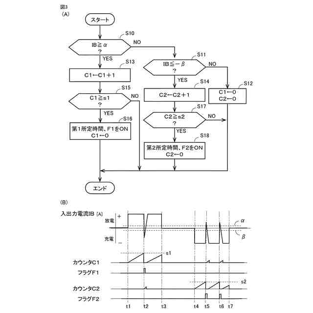 好ましくは、充電手段は、駆動用モータの回生電力を充電可能に構成されてよい。電流制御部は、走行時、回生電力によるバッテリの充電が第2所定期間継続したとき、第2設定期間の間、バッテリから放電を行うよう入出力電流を制御する。
