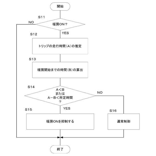 【解決手段】トリップの走行時間を推定し(S12)、暖房の指示に基づき、指示された暖房が開始できるまでの準備時間を算出し(S13)、推定された前記トリップの走行時間内に暖房を開始できない場合、またはトリップの走行時間が暖房開始後の所定時間以内である場合に、暖房開始を抑制する(S15)。