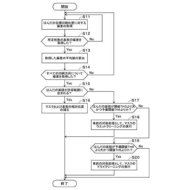 また、特許文献2に記載の印刷装置の印刷制御部は、検査結果のデータのフィードバックを受けて、検査結果のデータに基づいて、基板とスクリーンマスクとの相対的な位置を変更可能な基板保持テーブル移動機構または印刷ヘッドなどを移動するように、印刷パラメータ(印刷条件)を変更することができる。これにより、特許文献2に記載の印刷装置は、はんだの位置ずれを抑制しようとしている。
