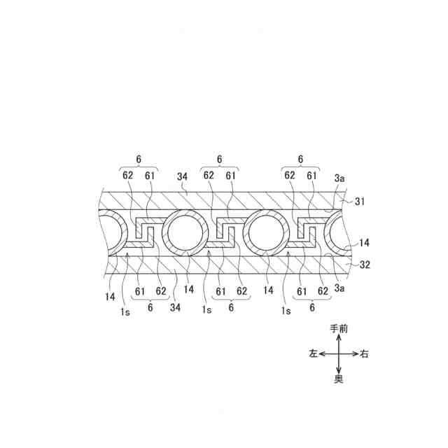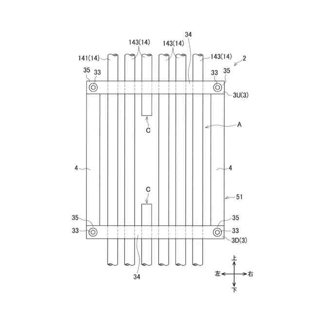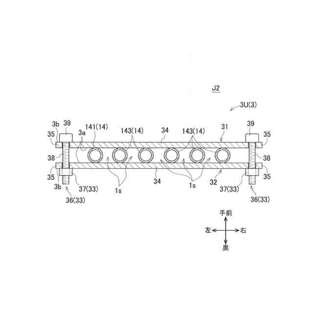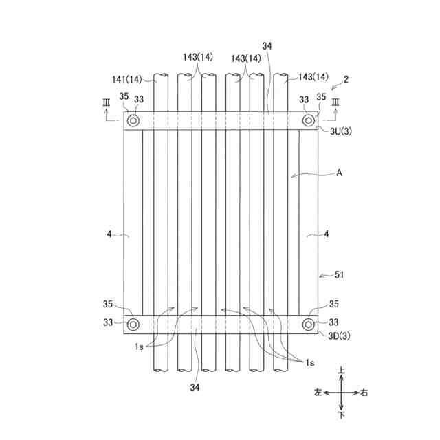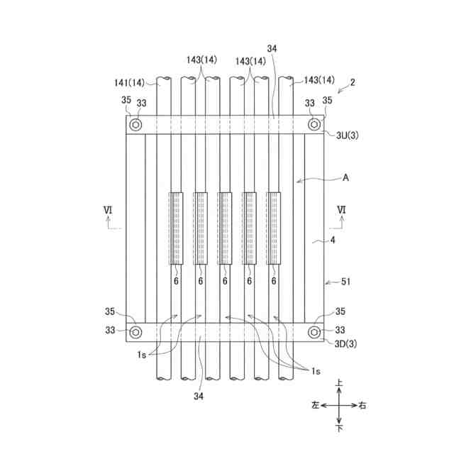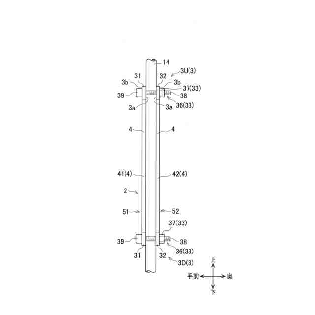 前記複数の吊下管にまたがって配置され、上下方向及び並び方向に直交する奥行方向の一方側及び他方側から前記吊下管を挟むように構成される複数の挟部を備え、