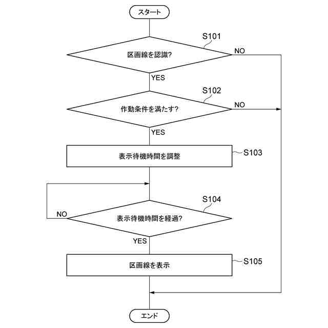 前記認識部によって前記区画線の認識が開始されたときに前記判定部によって前記作動条件を満たすと判定されていない場合、認識された前記区画線を表示させず、