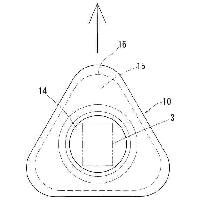 さらに、この発明においては、第一又は第二の解決手段において、角形又は先端を丸めた角形が、三角形又は先端を丸めた三角形である第三の解決手段を採用できる。