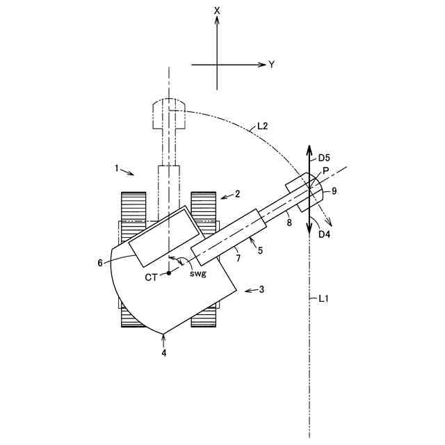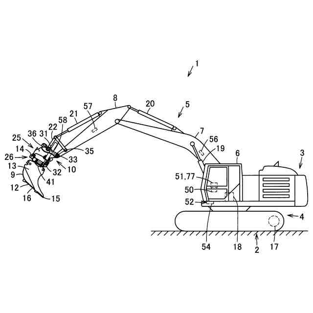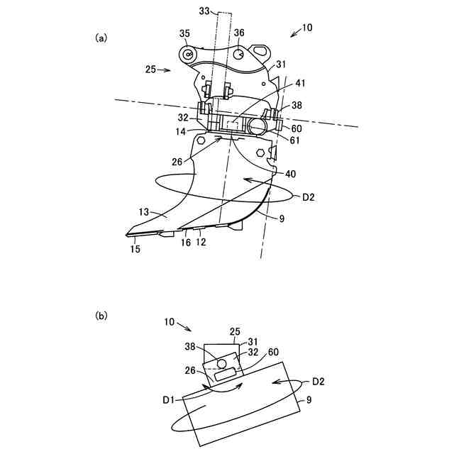 一方で、チルトローテータと呼ばれるアタッチメントをスティックとバケットとの間に装着すればバケットを左右に旋回させることができ、フロント作業機の向きに対して横(左右)方向に掘削したり均し操作をしたりすることが可能となる。但し、この場合バケットの車両の横方向への動作は上部旋回体の旋回によるためバケットは直線状ではなく円弧状に動くこととなり、地面を直線状に均すためには旋回操作に合わせてブームやスティックの操作によりバケットの車両前後方向位置を調整する必要があり、操作は容易ではない。