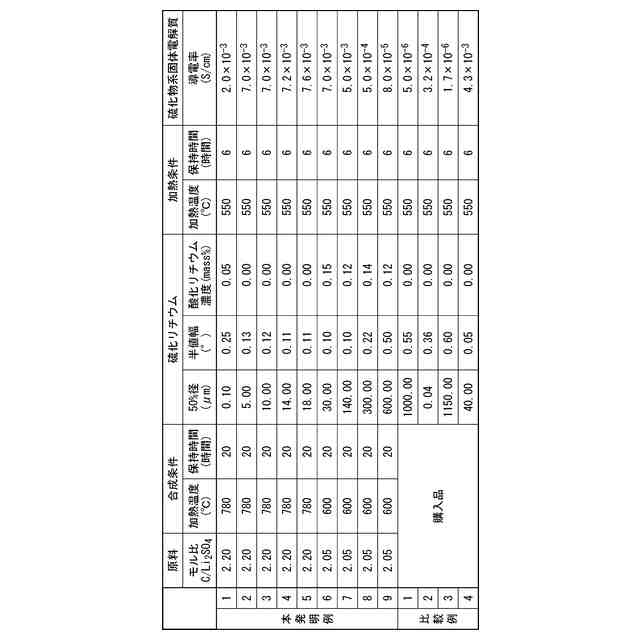 また、特許文献4においては、硫酸リチウムと炭素材料を造粒して直径0.05mm×長さ1mm程度の比較的サイズの大きい造粒粉を形成し、これを反応させることで硫化リチウムを製造しており、大気中の水分や酸素による酸化分解を抑制でき、純度の高い硫化リチウムを製造することが可能である。