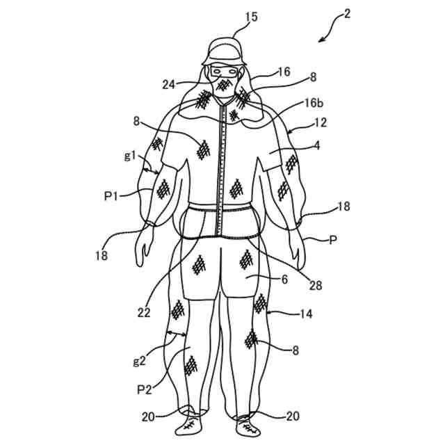 特許文献2には、ネット生地を2重にし、生地間に複数のプラスチック製のスペーサ(空間形成部材)を介在させてつなぎ服仕様に作成した防虫服が開示されている。股下より首部までをファスナーで開閉できるようにし、顔の目に対応する部分には透明なビニール片が固定されている。手首や足首部分には隙間が生じないようにゴム紐が設けられている。スペーサの高さは2cm程度となっている。
