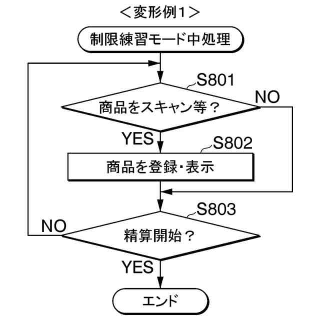 前記練習モードは、前記登録操作を受け付ける商品登録処理と、前記商品登録処理の後に行われる精算処理とを含み、