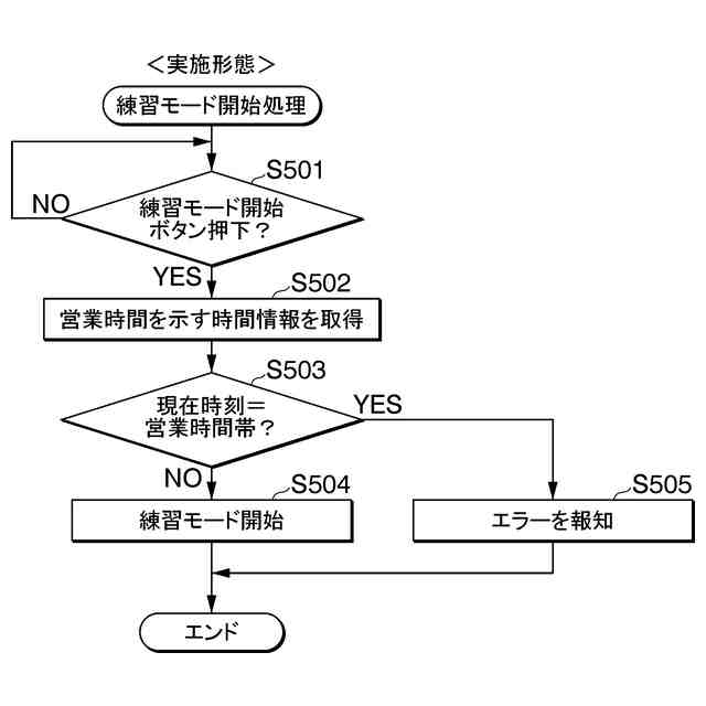 前記制限手段は、前記取得手段によって取得される前記時間情報に基づいて、営業時間中ではない場合に前記練習モードの制御を許容し、営業時間中である場合に前記練習モードの制御を制限する、