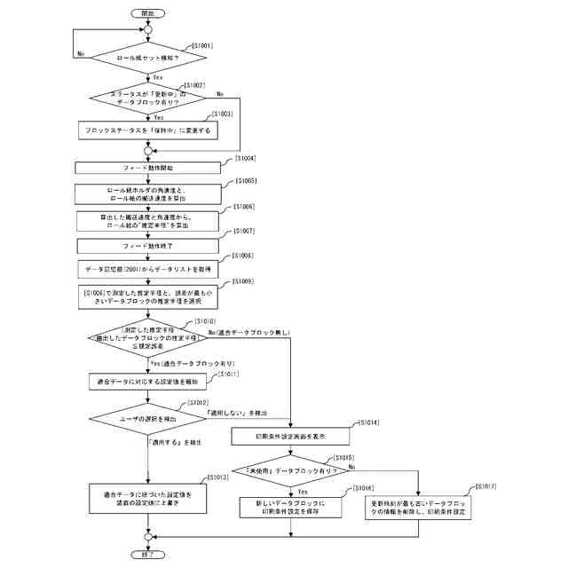 計測したロール紙の外形と媒体種別とを含む媒体情報で構成されるデータリストを記憶部に記憶し、