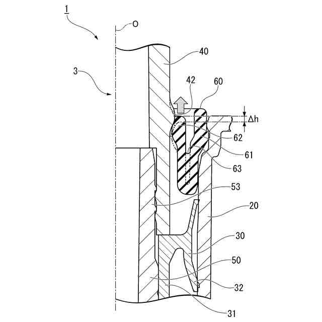 (2)前記操作部材の外周面は、径方向外側に突出する突出部を有し、前記弾性部材は、前記シリンダに固定された固定部と、前記突出部に下方から当接する当接部と、前記固定部と前記当接部との間に形成され、上方に向けて開口した溝部と、を備えてもよい。