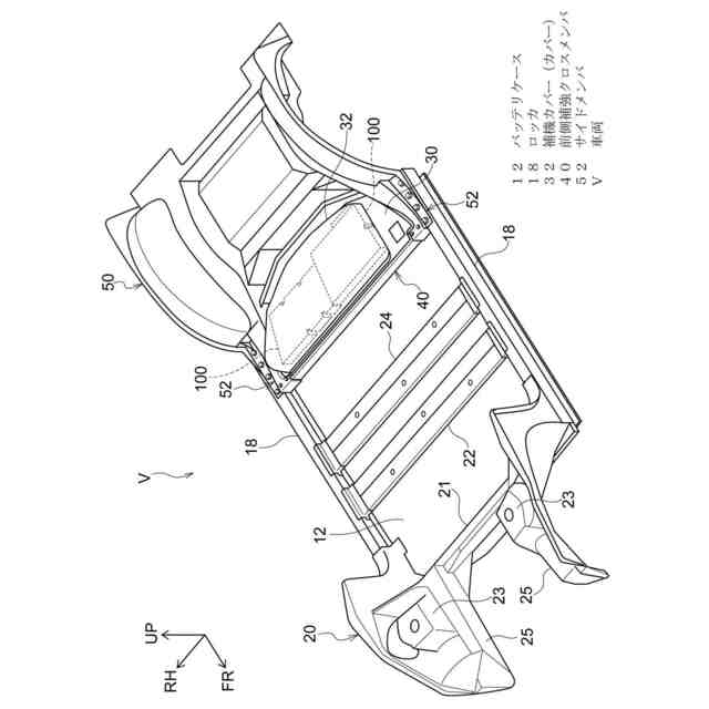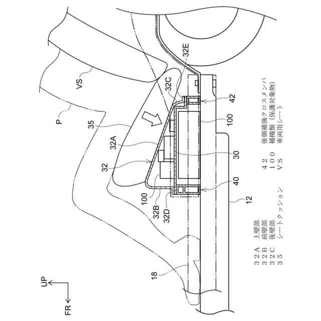 また、バッテリケースの車両上方にはカバーが設けられている。カバーは、保護対象物を外側から覆っており、車両用シートのシートクッションを車両下方側から支持している。ここで、カバーの車両前方側には前側補強クロスメンバが設けられている。前側補強クロスメンバは、車両幅方向に延在しており、前側補強クロスメンバの上端部には、カバーを下方から支持する支持部が設けられている。これにより、車両の前面衝突時に車両用シートに着座した乗員からカバーへ過大な荷重が入力された場合であっても、衝突荷重が前側補強クロスメンバを介して車両幅方向に伝達されるため、保護対象物へ衝突荷重が入力されるのを抑制できる。なお、以下の説明において、「前面衝突時」を単に「前突時」と称する場合がある。また、ここでいう「カバーを下方から支持する支持部」とは、カバーを直接的に支持する構成に限定されず、カバーを間接的に支持する構成を広く含む概念である。