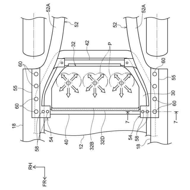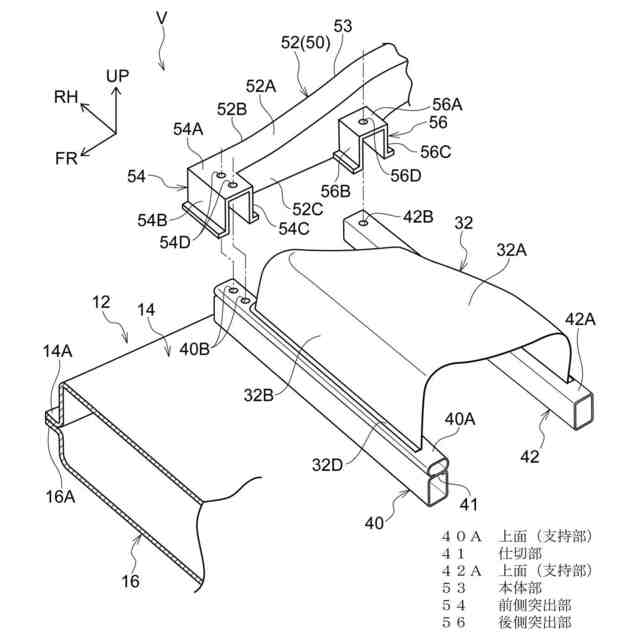 【解決手段】車両下部構造は、車両の下部に設けられ、バッテリが収容されると共に上面が車室床部を構成するバッテリケース12と、バッテリケース12の車両上方に設けられた保護対象物を覆うと共に、車両用シートVSのシートクッション35を車両下方側から支持するカバー32と、カバー32の車両前方側に設けられて車両幅方向に延在し、上端部にカバー32を下方から支持する支持部40Aが設けられた補強クロスメンバ40と、を有する。