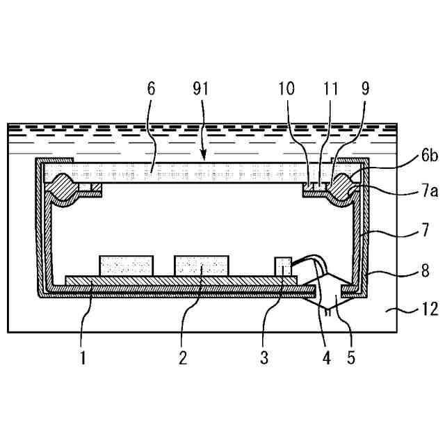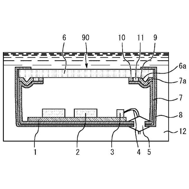 しかしながら、常時水中に設置される場合など、水との接触時間が長期間(数年~)となる光源デバイスの場合は、水がシーリング材内部に拡散してデバイス内部へ透過することにより、電子部品の結露または故障が発生する懸念がある。したがって、水がデバイス内部へ透過するのを抑制する構成が必要である。