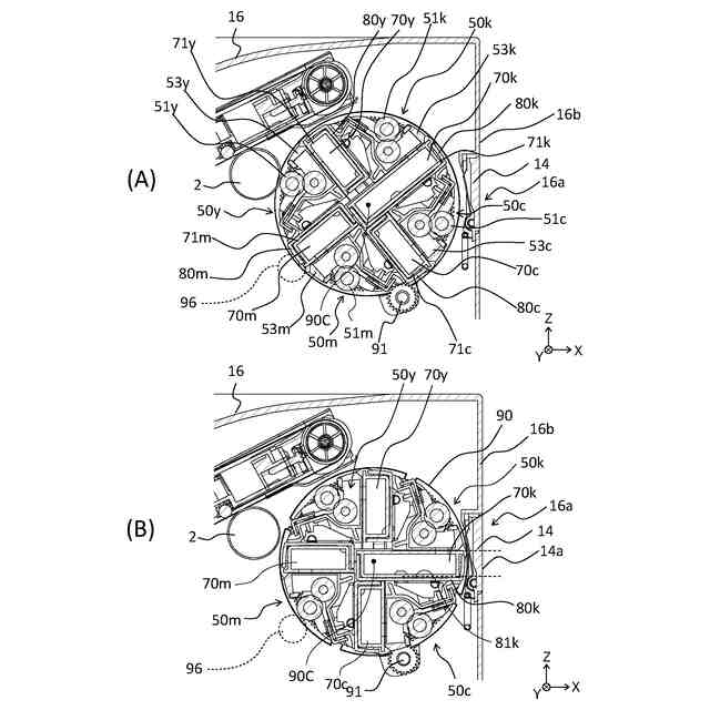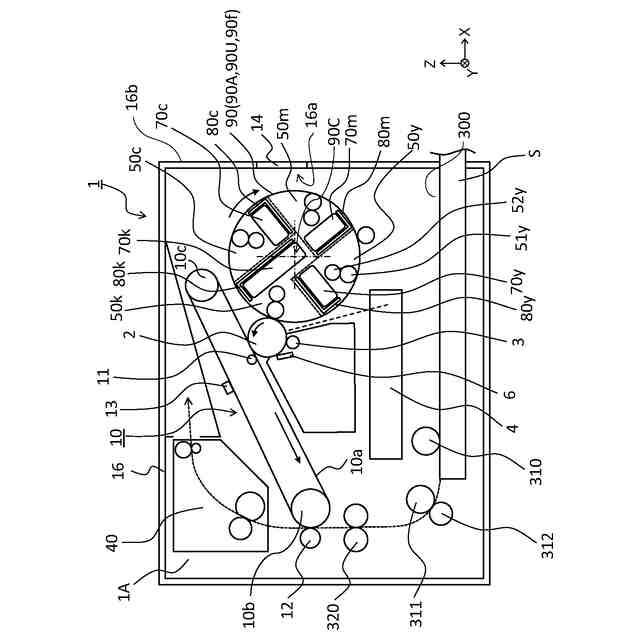 図1~図12を用いて、本実施形態による画像形成装置1について説明する。以下の説明及び各図面において、画像形成装置1が水平面に設置された場合の鉛直方向をZ方向とする。Z方向と交差する方向であって、後述するロータリ本体90の回転軸線90Cの方向(ロータリの回転軸線方向)をY方向とする。Z方向及びY方向の双方と交差する方向をX方向とする。X方向及びY方向は、好ましくは水平方向である。また、X方向、Y方向、Z方向は、好ましくは互いに直交する。また、必要に応じ、各図面に図示した矢印X、Y、Zの方向をそれぞれ+X側、+Y側、+Z側と表し、その反対側をそれぞれ-X側、-Y側、-Z側と表す。