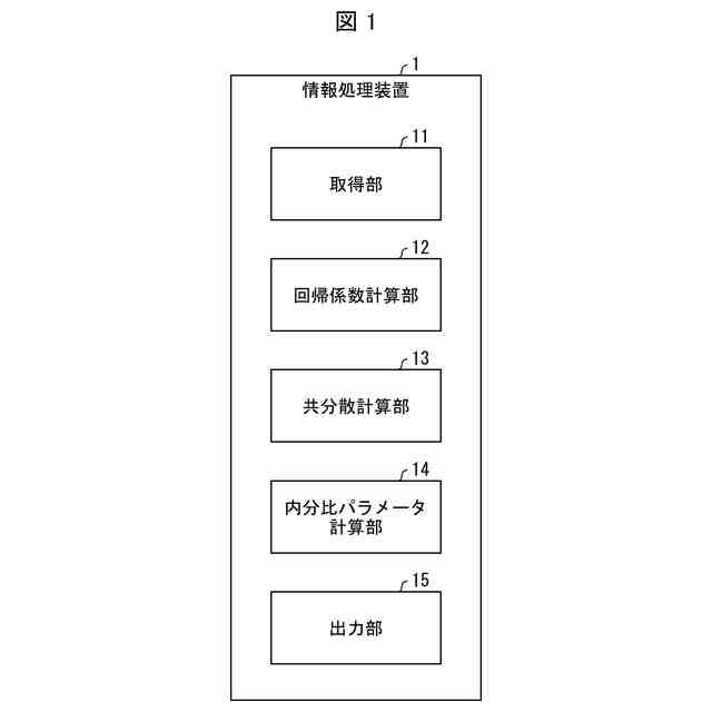請求項1に記載の情報処理装置としてコンピュータを機能させるためのプログラムであって、前記取得手段、前記回帰係数計算手段、共分散計算手段、内分比パラメータ計算手段、及び出力手段としてコンピュータを機能させるためのプログラム。