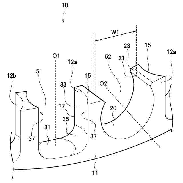 軸受の負荷容量を向上させる目的で、軸受の玉数を多くする場合、冠型保持器では柱部の周方向の厚みが小さくなる。これにより、離型の際に、爪や柱部が弾性変形に耐えられず、成形不良が発生する可能性がある。