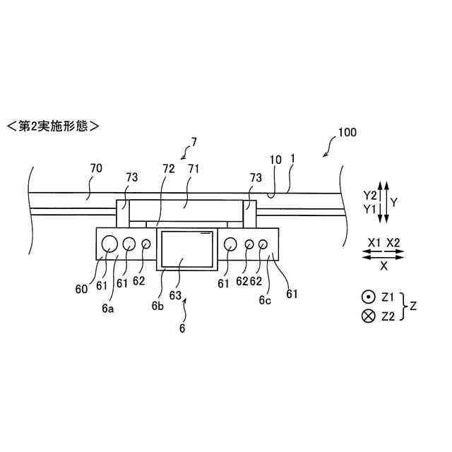 第2実施形態による操作部、操作部移動部および天板を示す模式的な側面図である。