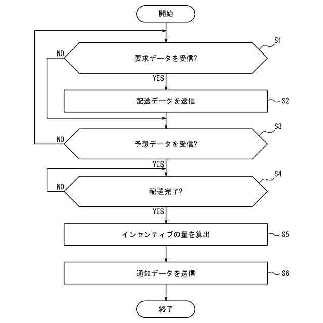 受信した前記予想データで示される完了予想時刻と、前記配送が実際に完了した時刻との差に応じて、前記ユーザに付与するインセンティブの量を算出する