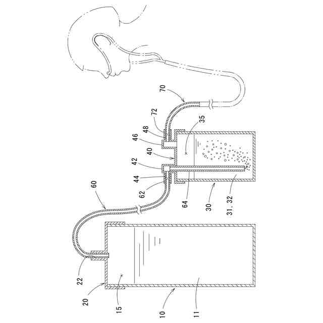 また、上記第1の態様の限定例として、「エクソソーム液収容装置が、前記水素発生源の下流側に設けられ、少なくともほぼ密閉された容器であり、気体が存在する余剰空間を上方に残してエクソソーム液が収容されるものである」という態様がある。