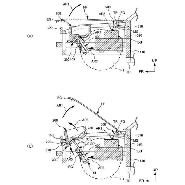 しかしながら、特許文献1に記載の技術においては、トランクフードを開くときに、トランクにおける車両上下方向に向かう移動に関する考慮がされていないため、トランクの底部に置かれた荷物の出し入れが困難になる虞があるという課題があった。