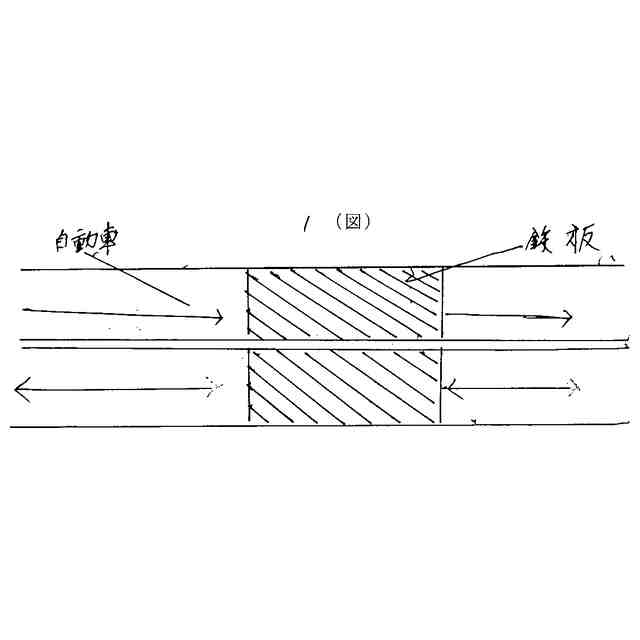 図面1図わ自動車の進行の矢印と路面の鉄板の場所