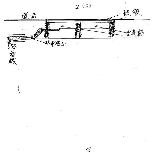 次から次へとくる自動車の重力で高速の路面に敷いた鉄板を押し下げて空気圧力お造り「風車を回して発電装置