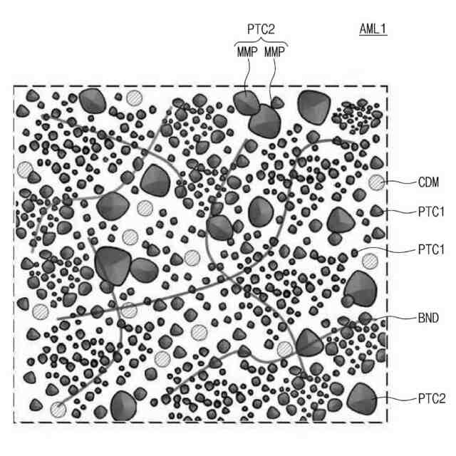 前記第1粒子は炭素を含む第1コーティング層を含み、