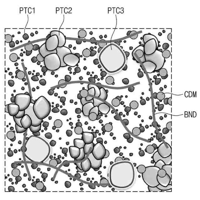 前記第1粒子は、互いに凝集された複数個の第1一次粒子を含み、