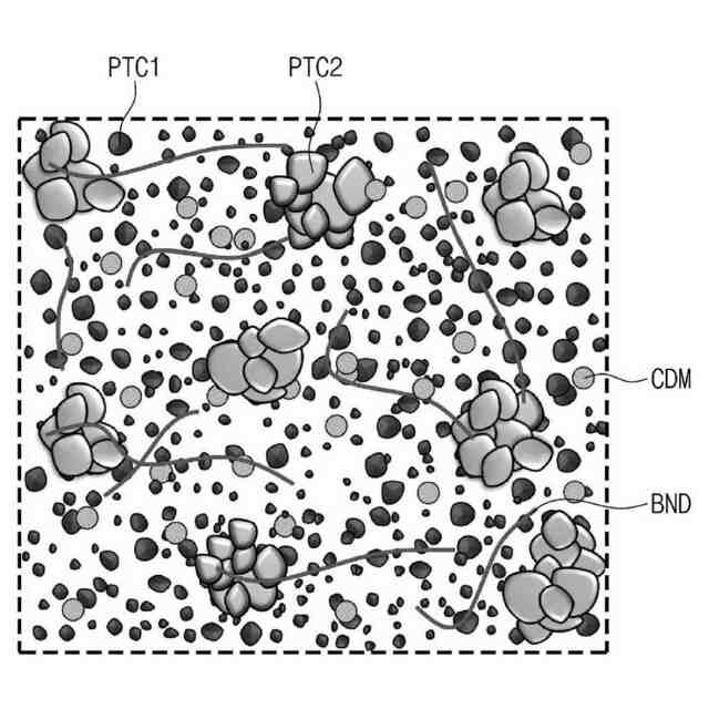 前記第1粒子は、互いに凝集された複数個の第1一次粒子を含み、