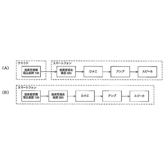 楽曲の特徴を得るために楽曲を解析する処理や、楽曲の特徴に合った効果音を決定する処理は、負荷の大きい処理であり、カーオーディオなどのオーディオ機器で行うよりも、スマートフォンなどの処理能力の高い装置で行うのが良い。