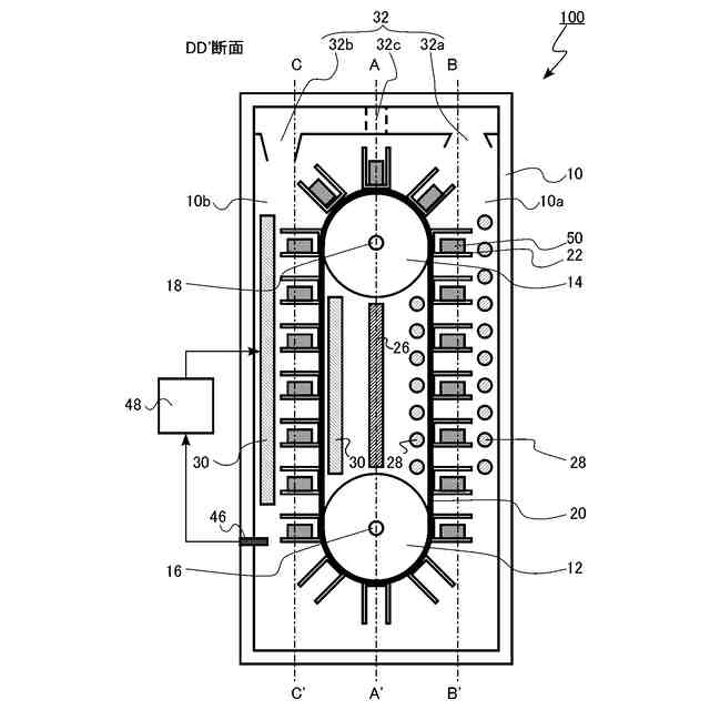 前記チェーンの内側に設けられ、前記筐体を前記チェーンが上昇する第1の領域と前記チェーンが下降する第2の領域とに区分する仕切り板と、